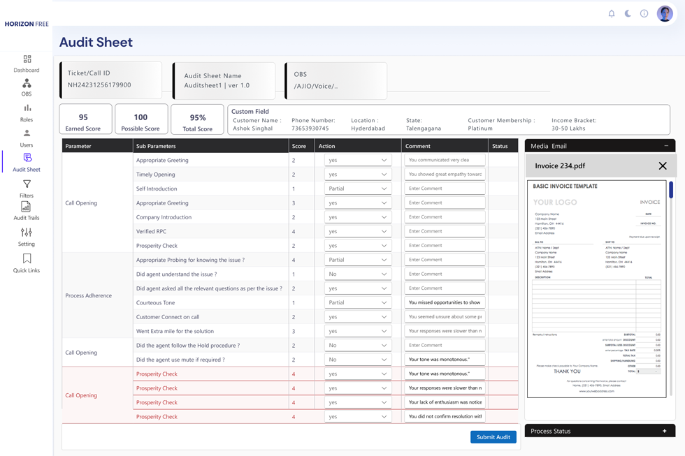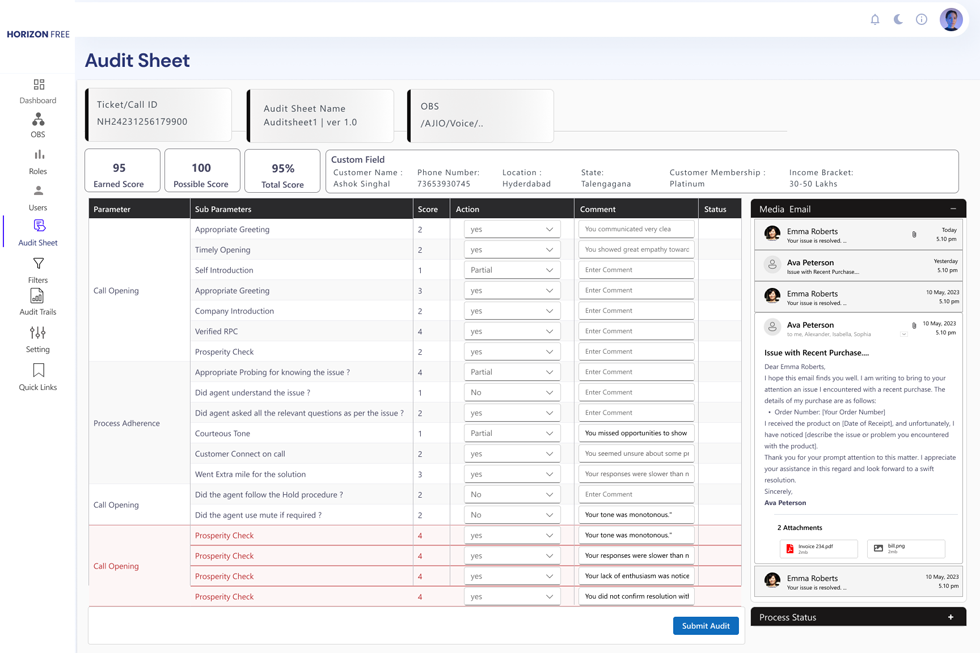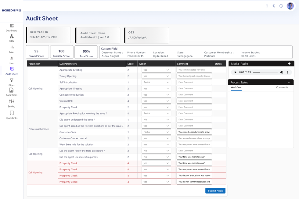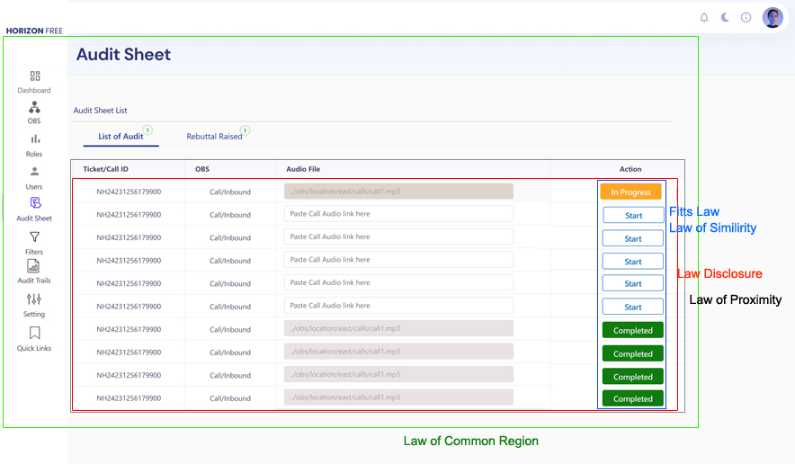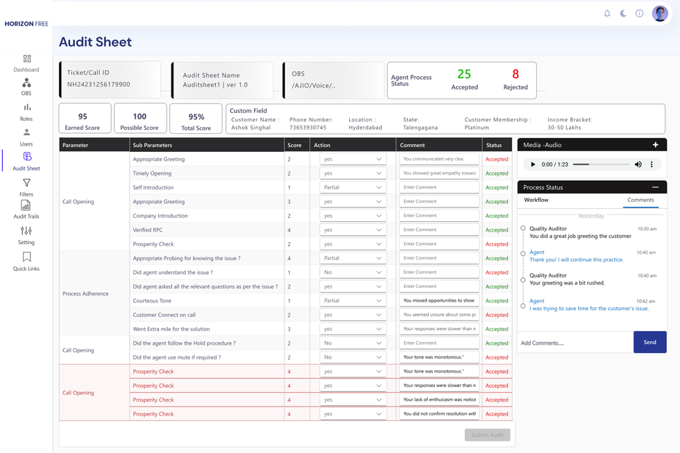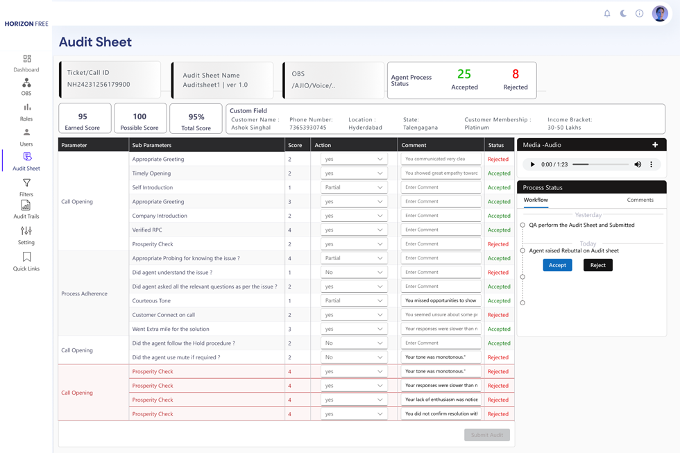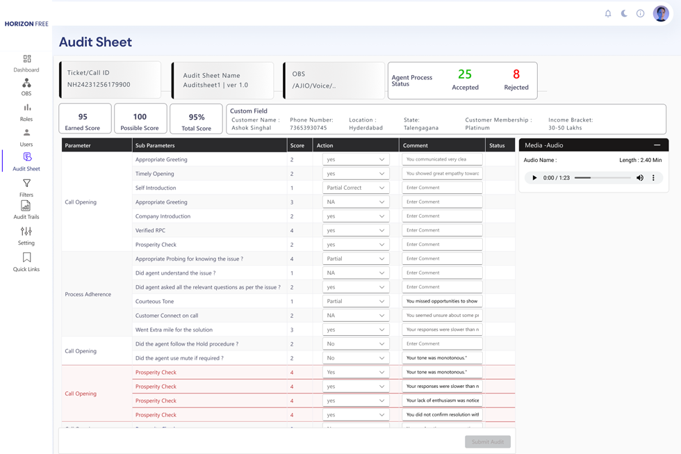 | DASHBOARD | OBS | ROLES | USERS | AUDIT SHEET | FILTERS | AUDIT TRAILS | SETTING | QUICKLINKS |