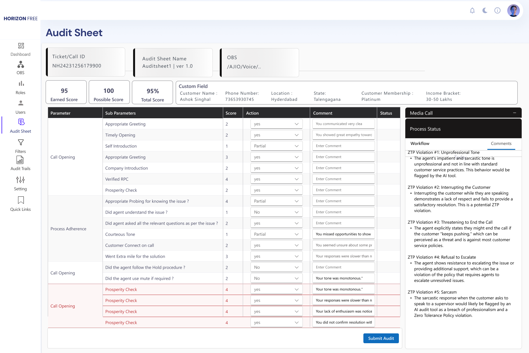 The AI Zero Tolerance Policy (ZTP) Call Audit project was initiated to address the critical need for automated monitoring and enforcement of zero-tolerance policies in customer service environments. These policies typically cover areas such as abusive language, policy breaches, and compliance with company guidelines. The primary objective of this project was to develop an AI-driven system capable of identifying violations during customer interactions, flagging them in real-time, and scoring agents based on the severity of the violations.