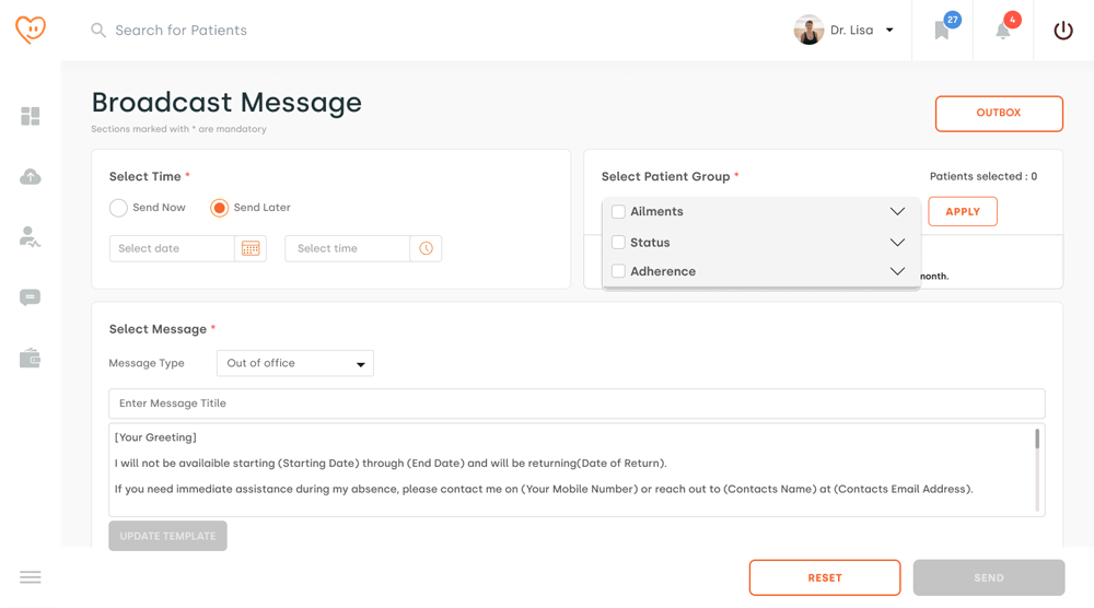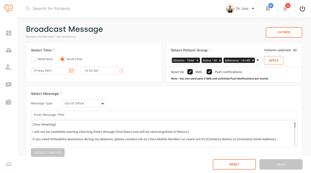 Sending messages to patients individually is a time-consuming process that requires significant manual effort, resulting in inefficiencies and potential errors